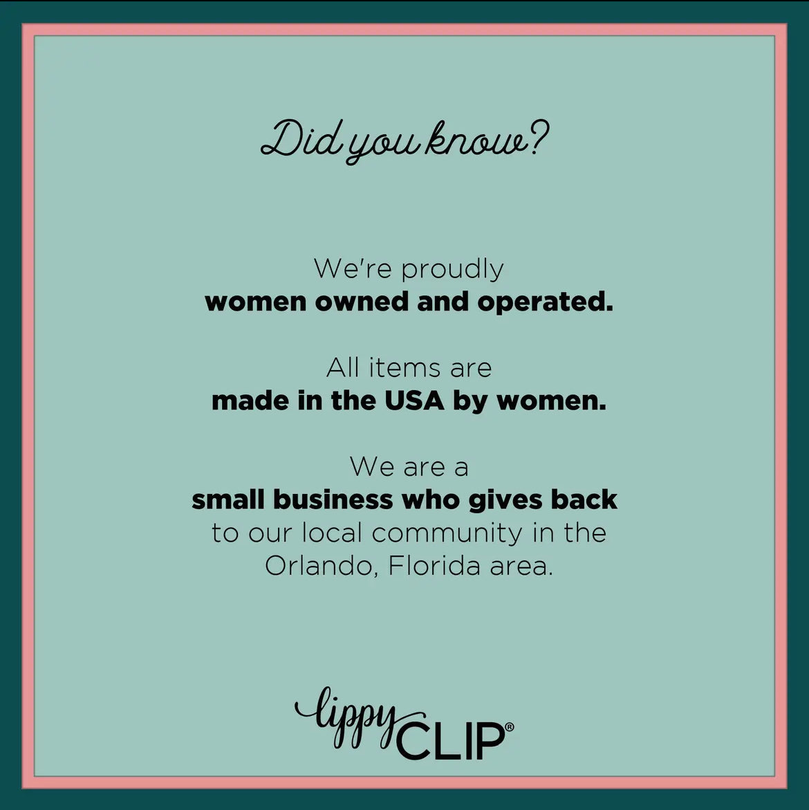 Designed and made in the USA! Small business that gives back! We are proud to offer products from Lippy Clip!